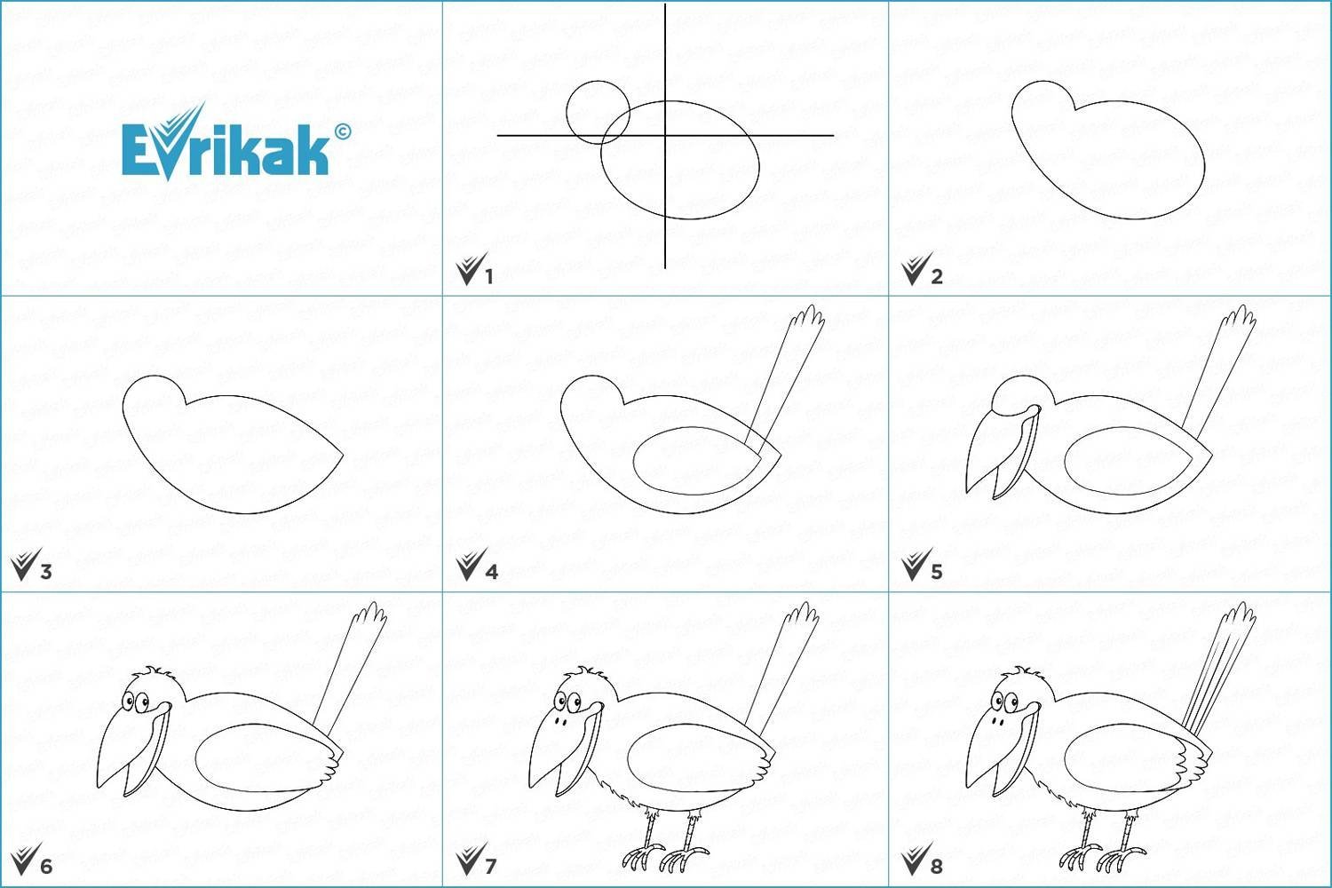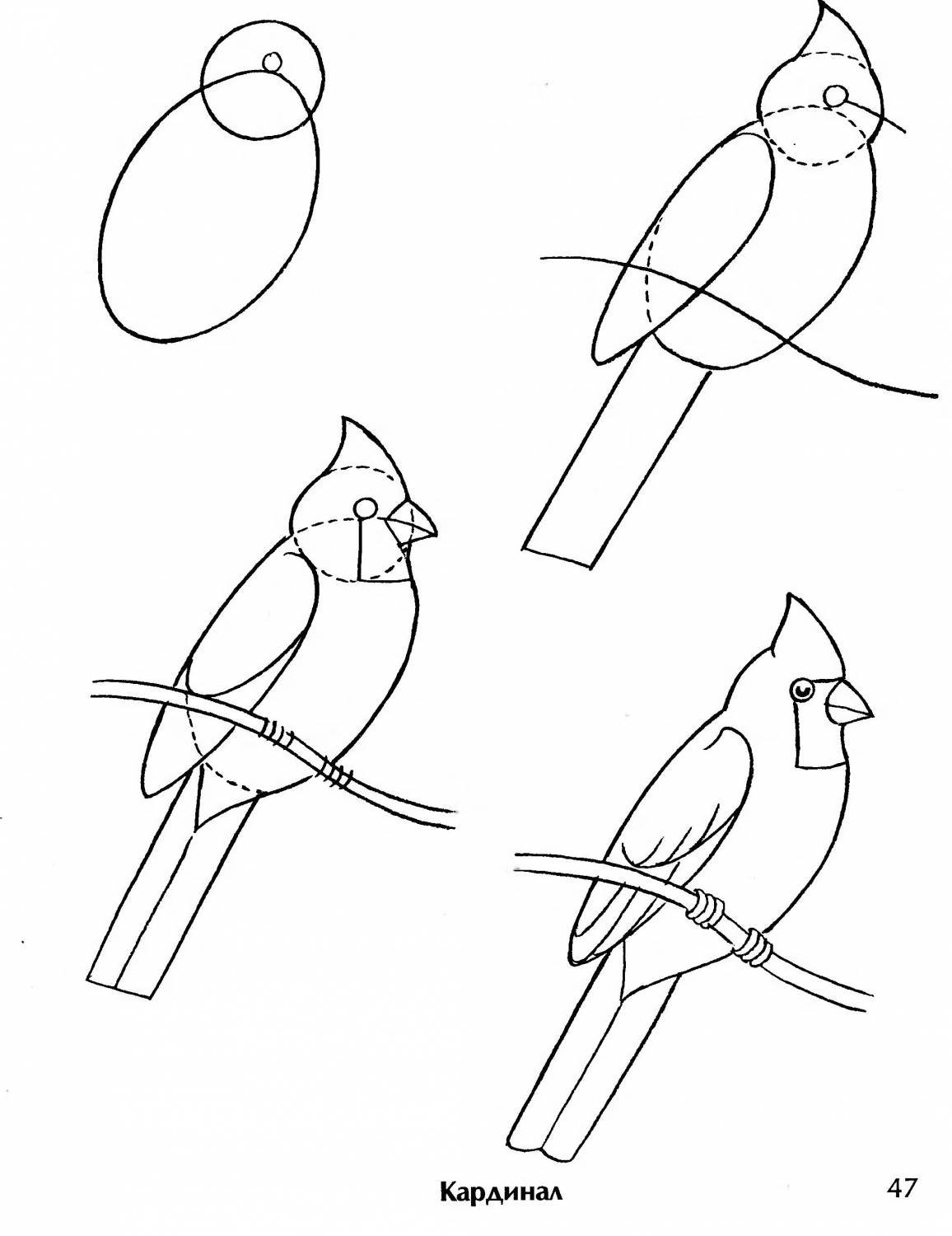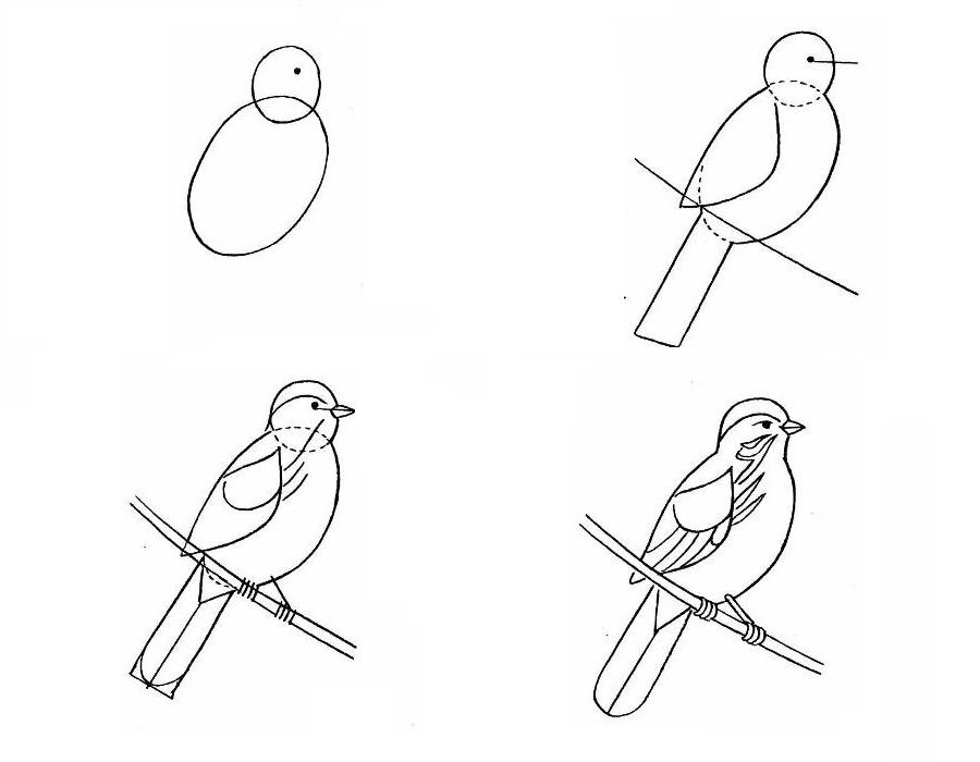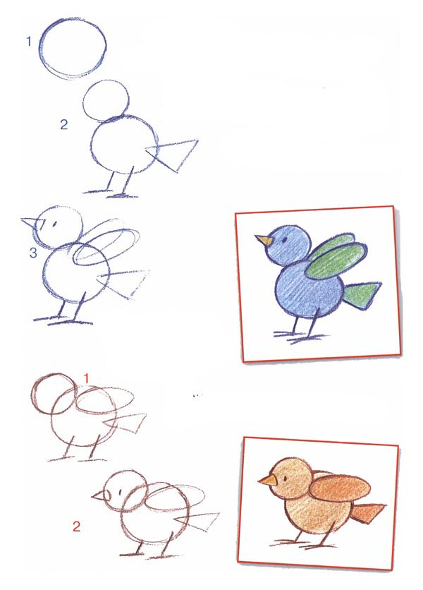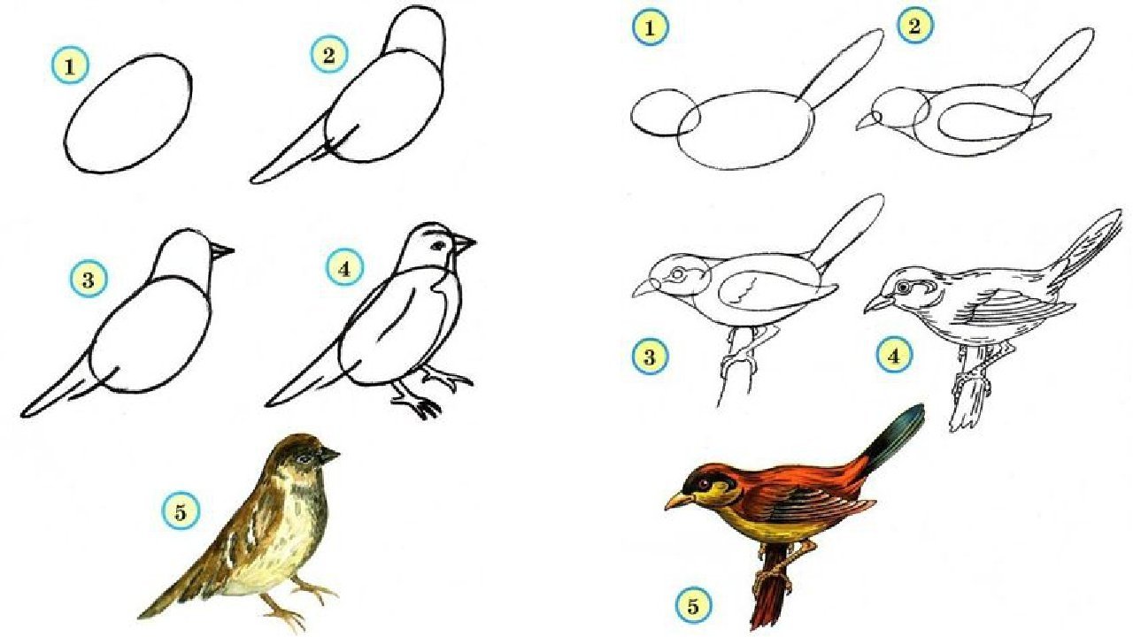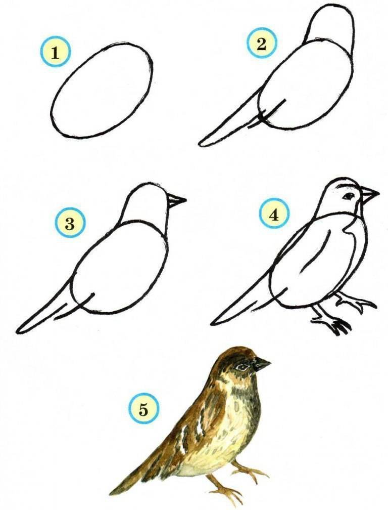 Схемы рисования птиц для дошкольников