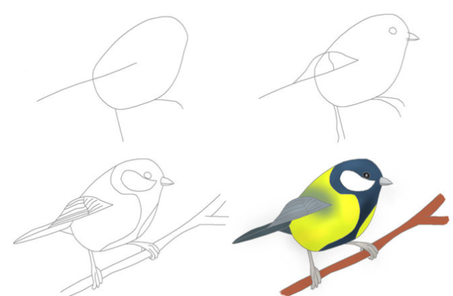 Поэтапное рисование синицы для детей