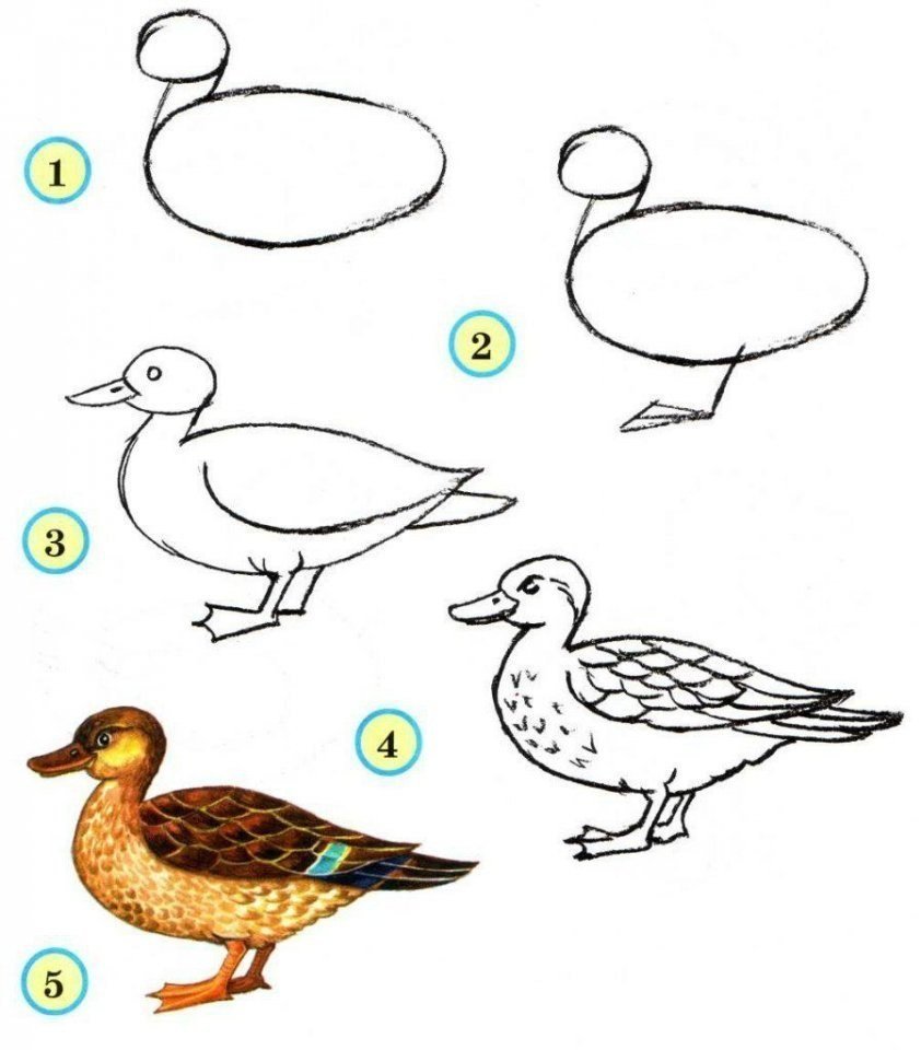 Как рисовать утку сбоку