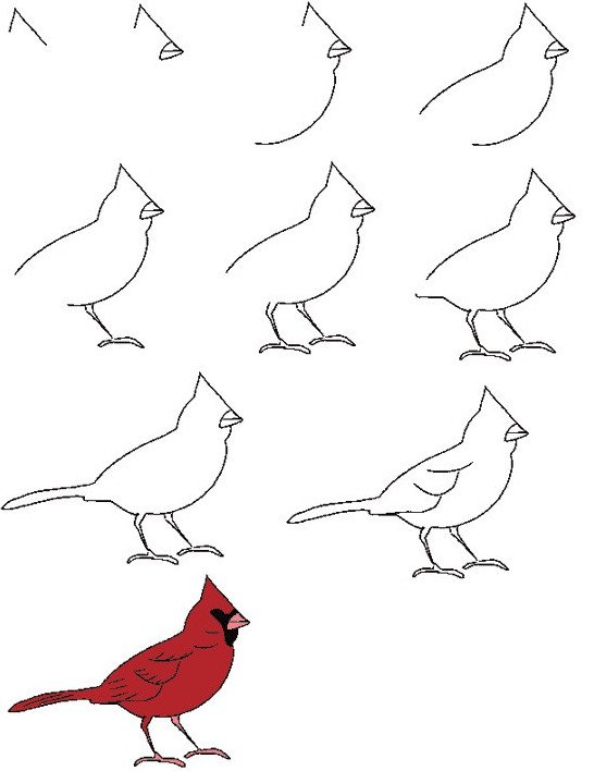 Пошаговое рисование птицы