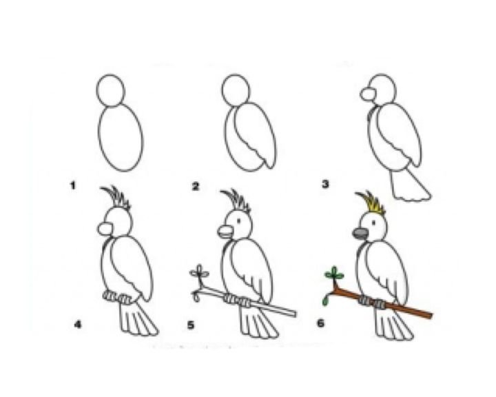 Схема рисования попугая для детей