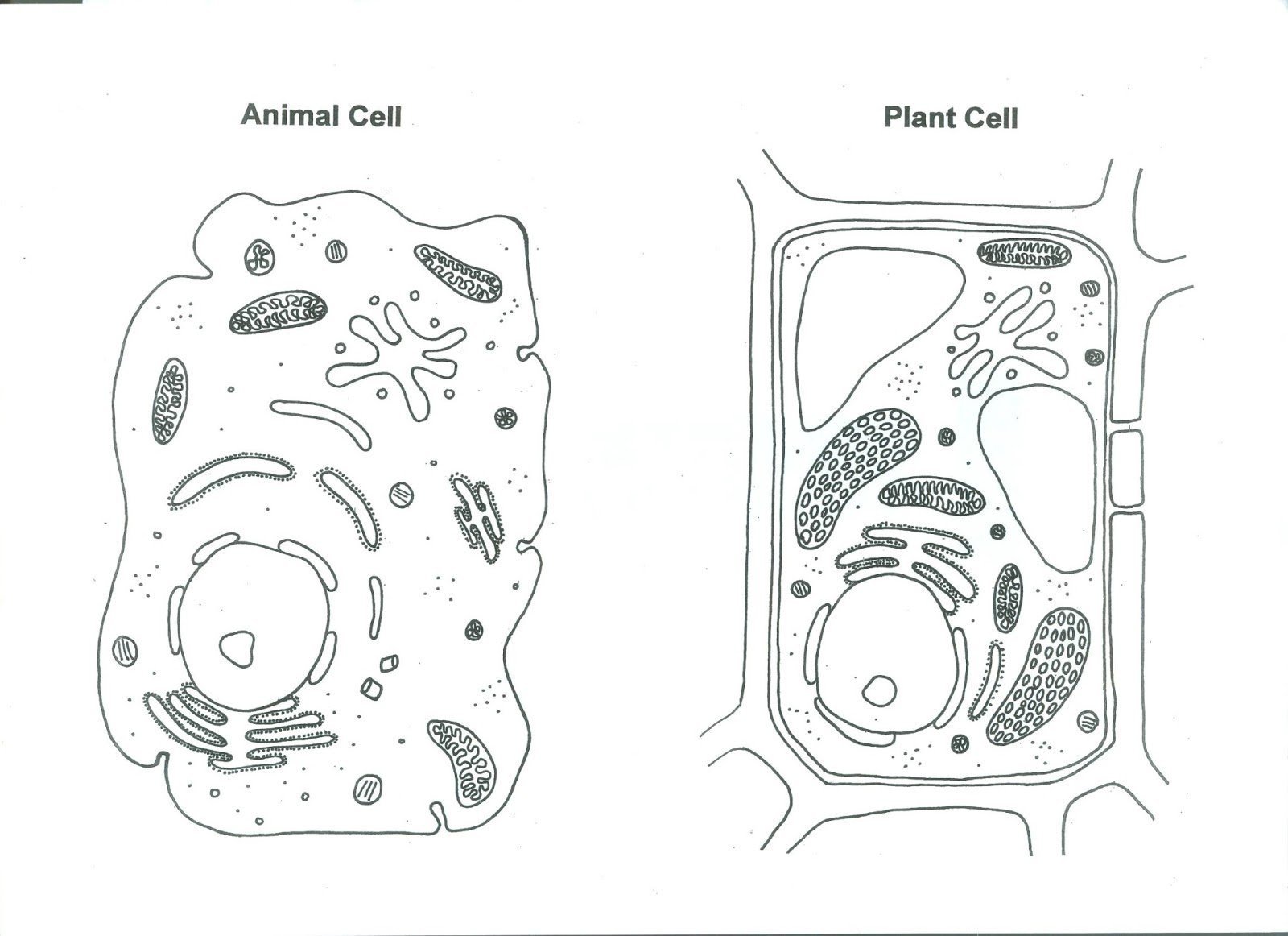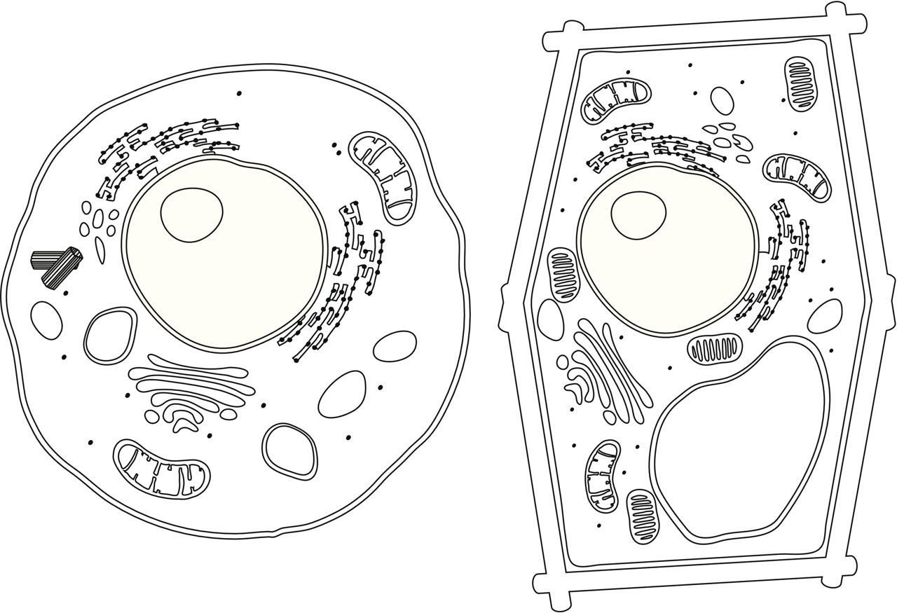 Строение растительной и животной клетки без подписей
