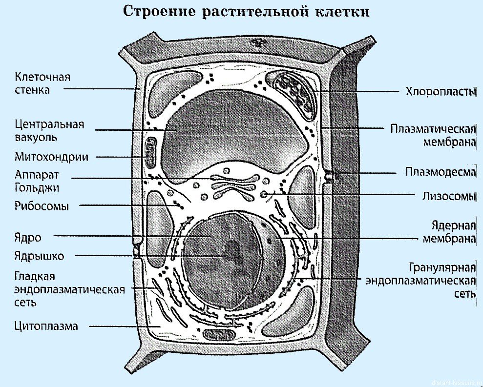 Строение растительной клетки черно белый рисунок