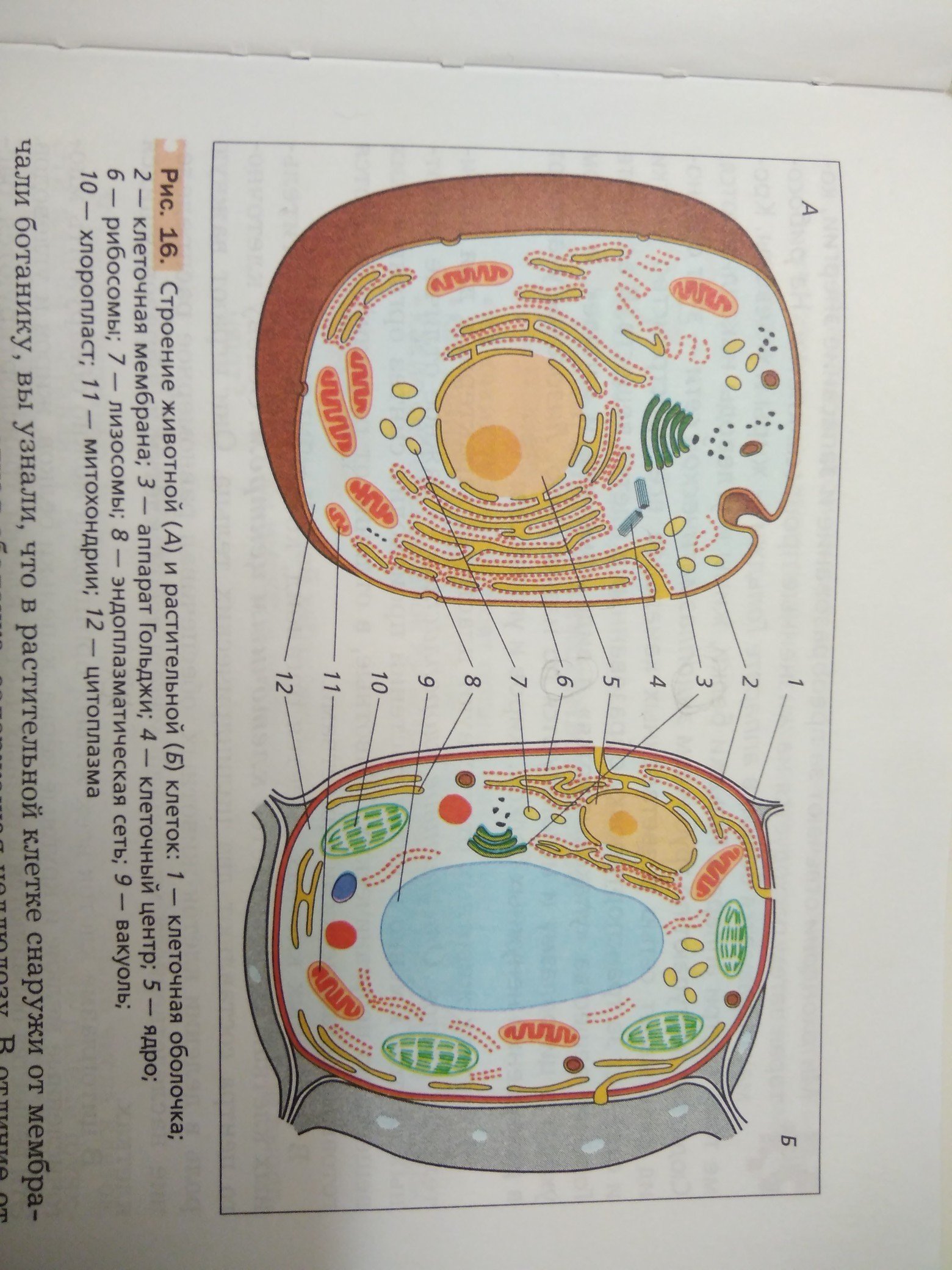 Схема строения животной и растительной клетки