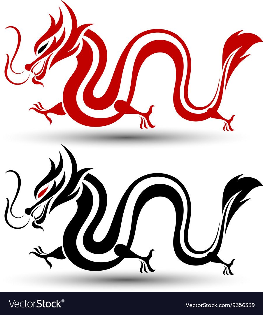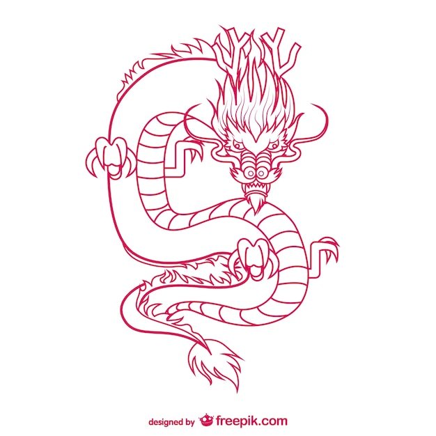 ![Китайский дракон контурный рисунок]()