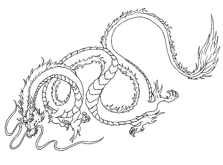 Китайский дракон контурный рисунок