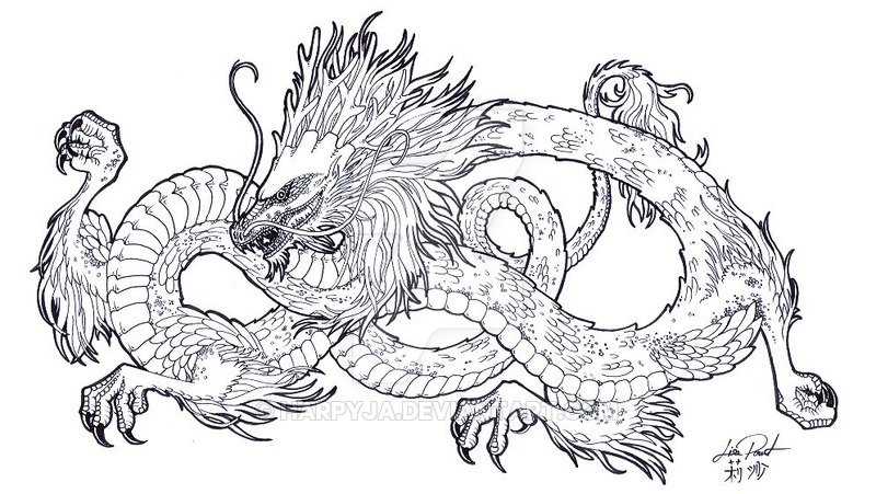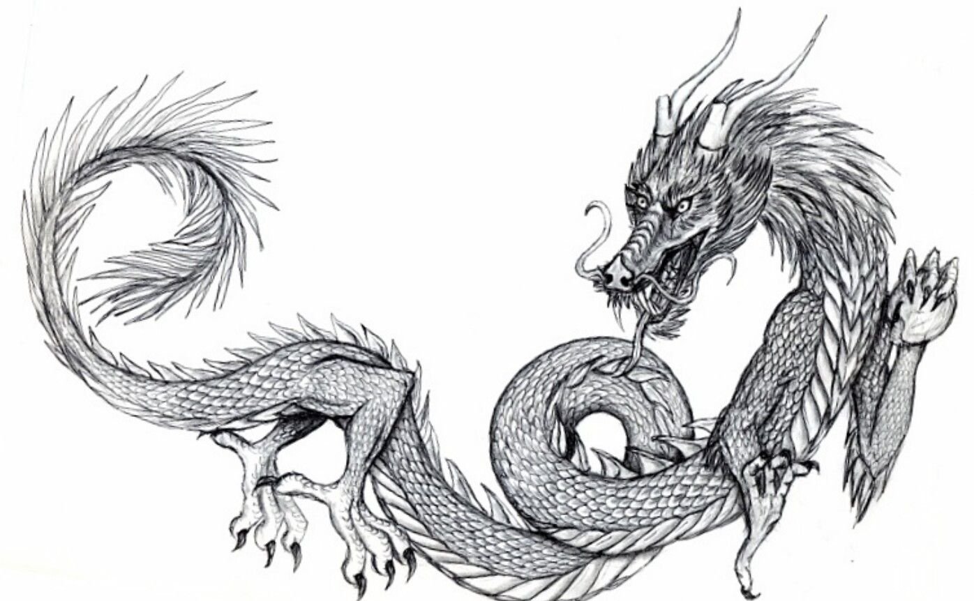 ![Китайский дракон эскиз]()