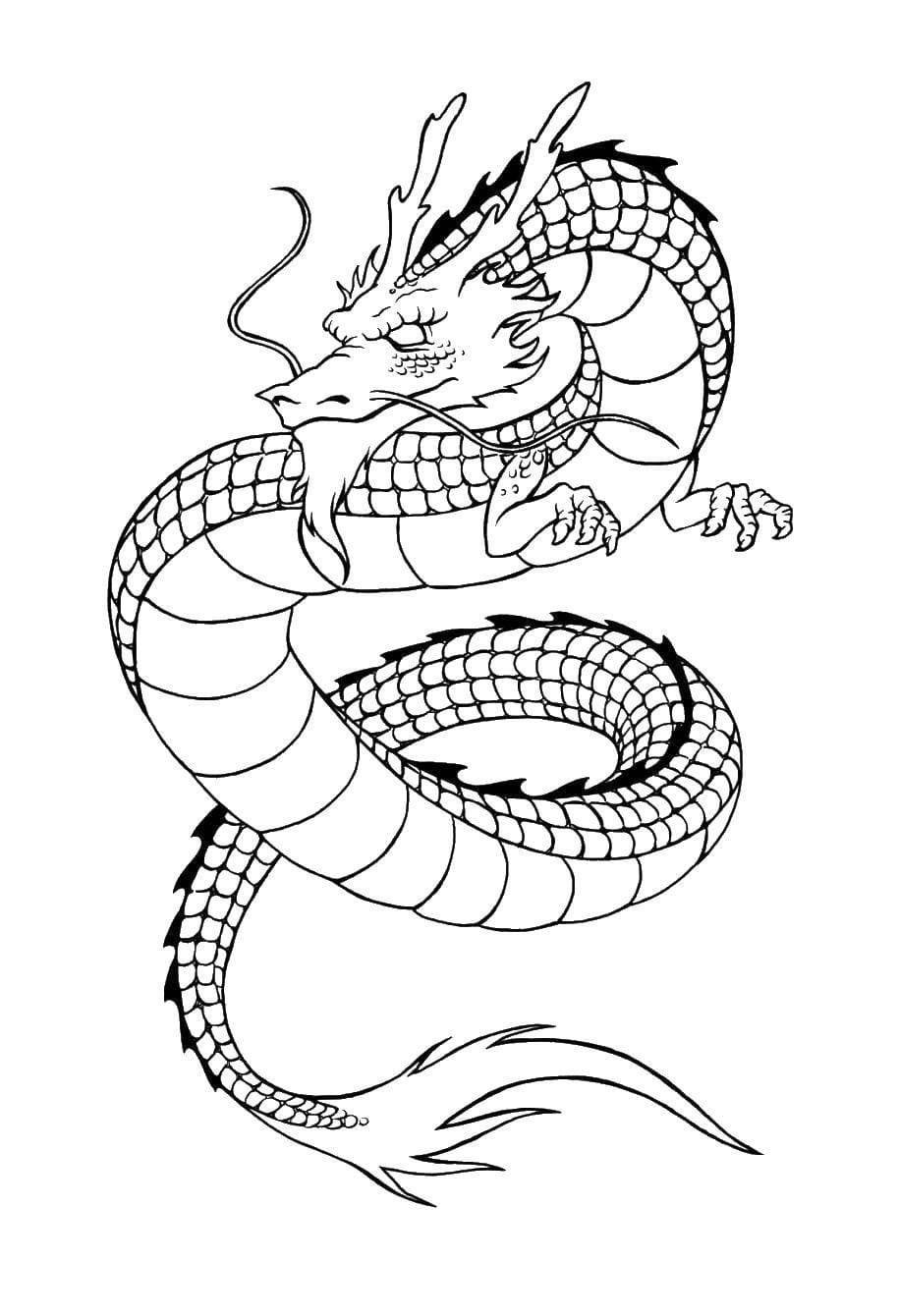 ![Китайский дракон раскраска]()