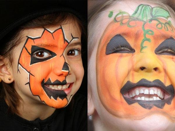Макияж тыквы на Хэллоуин для ребенка