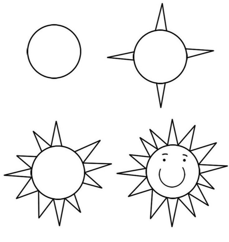 Схема рисования солнца для детей