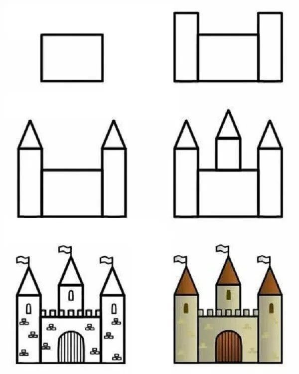 ![Поэтапный рисунок замка]()