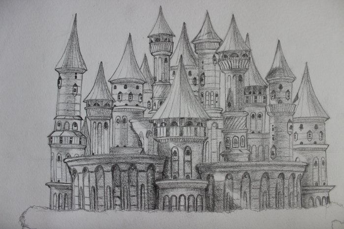 ![Сказочный замок карандашом]()