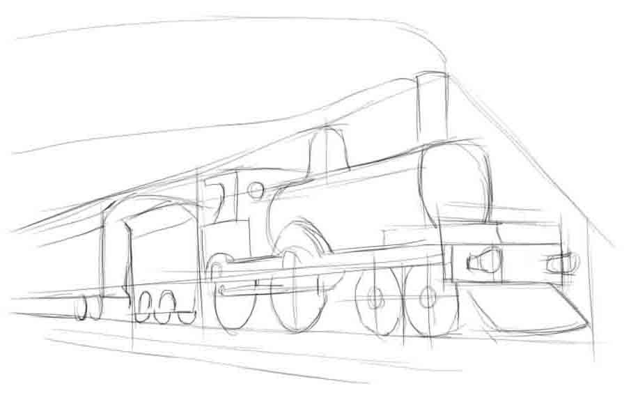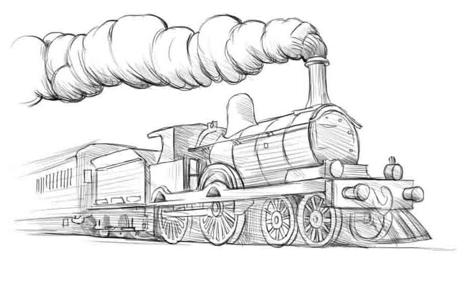 Рисунок паровоза с вагонами карандашом