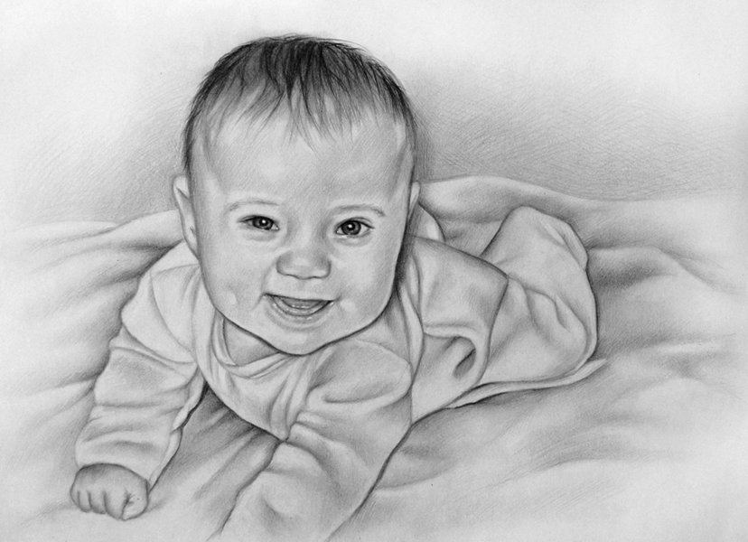 Портрет младенца карандашом