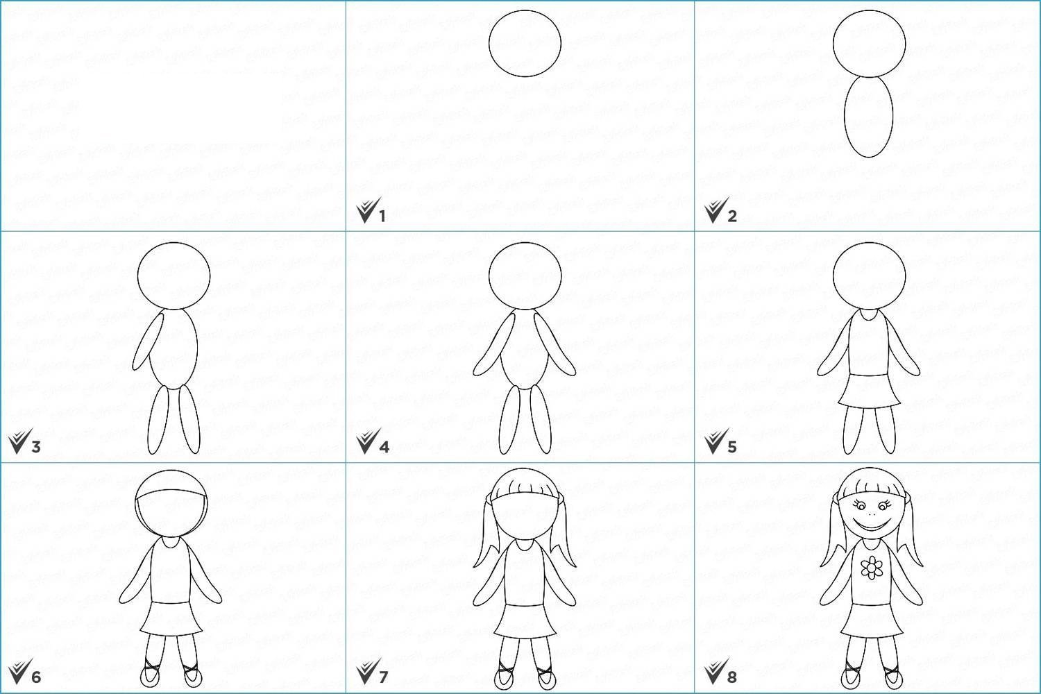 Схема рисования девочки для детей