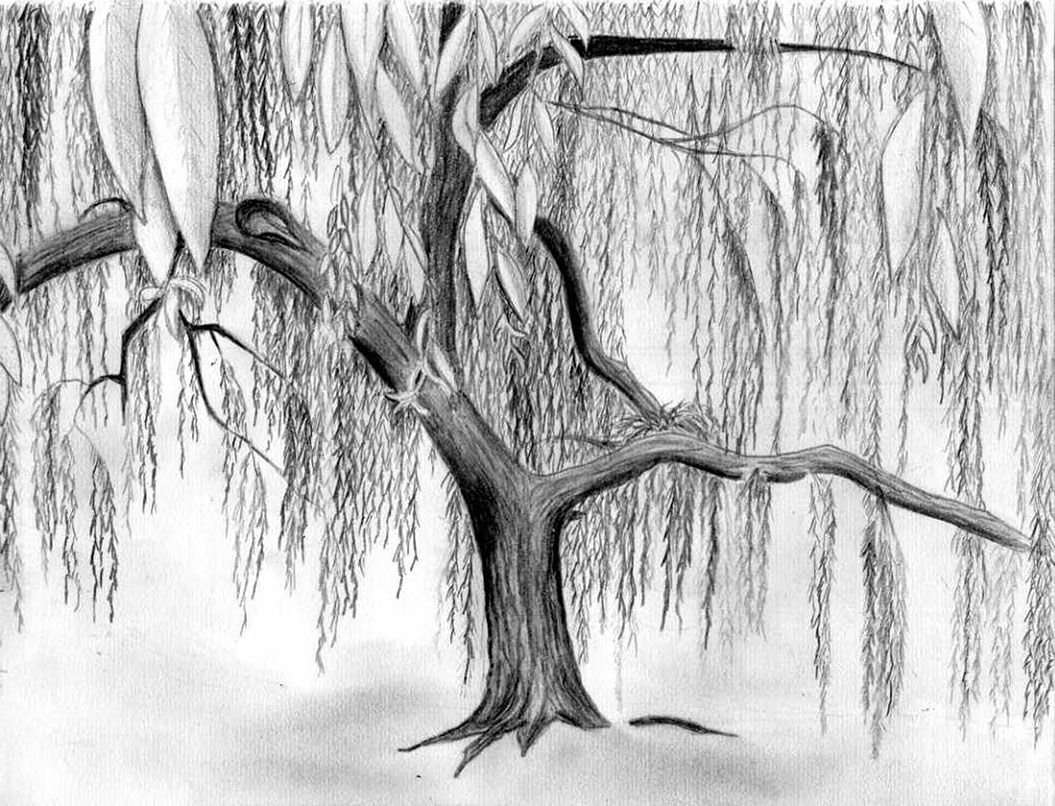 ![Плакучая Ива рисунок карандашом]()