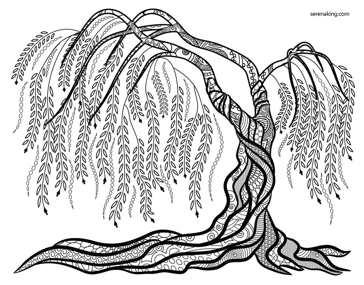 Раскраска дерево Ива