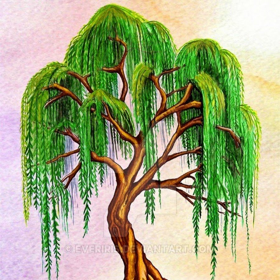 ![Плакучая Ива дерево рисунок]()