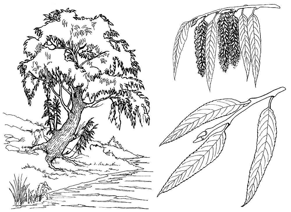 ![Раскраска дерево Ива]()