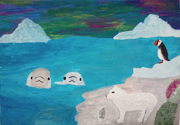 ![Рисование «белый медведь и Северное сияние» Лыкова]()