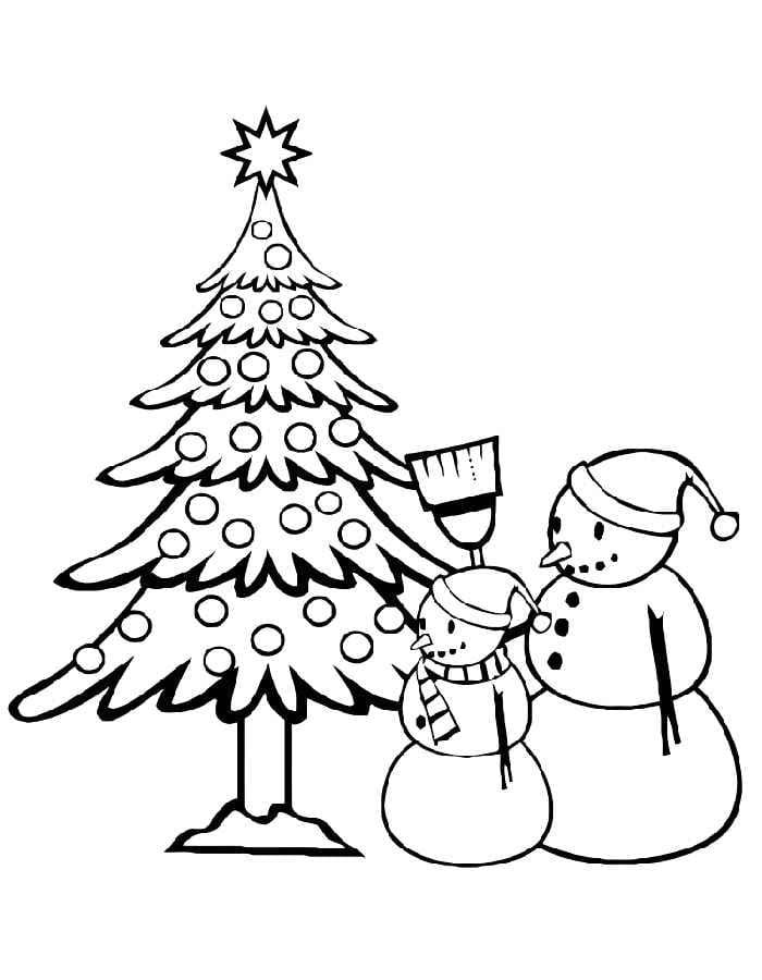 Снеговик с елкой раскраска