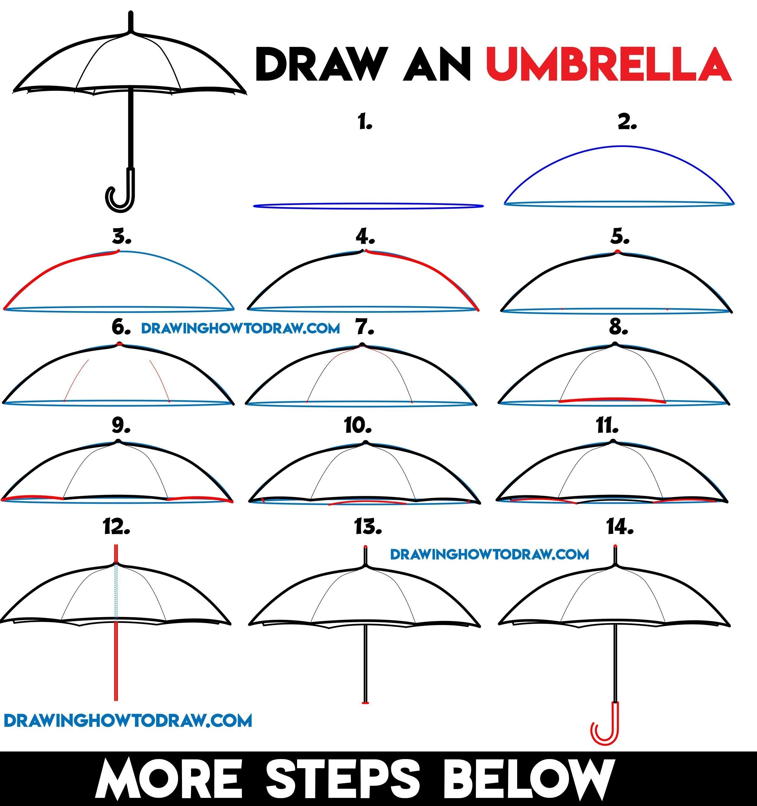 Зонтик поэтапное рисование