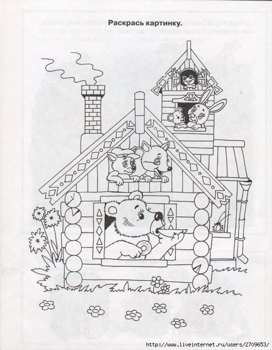 Теремок сказка раскраска домик
