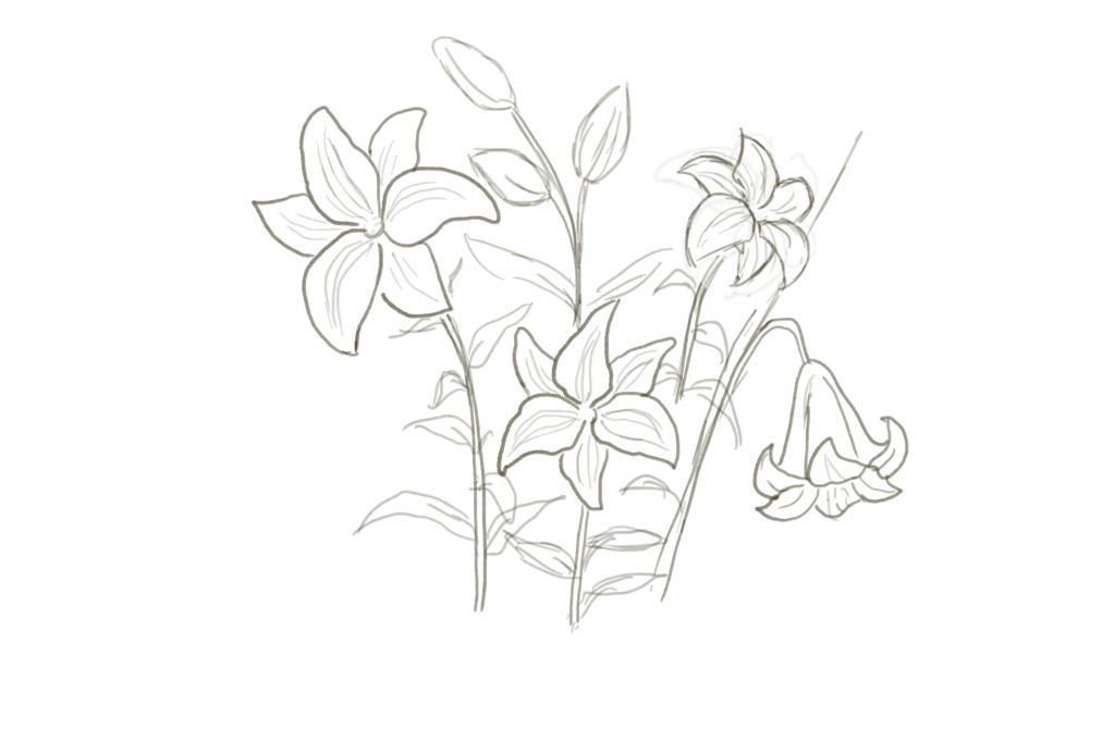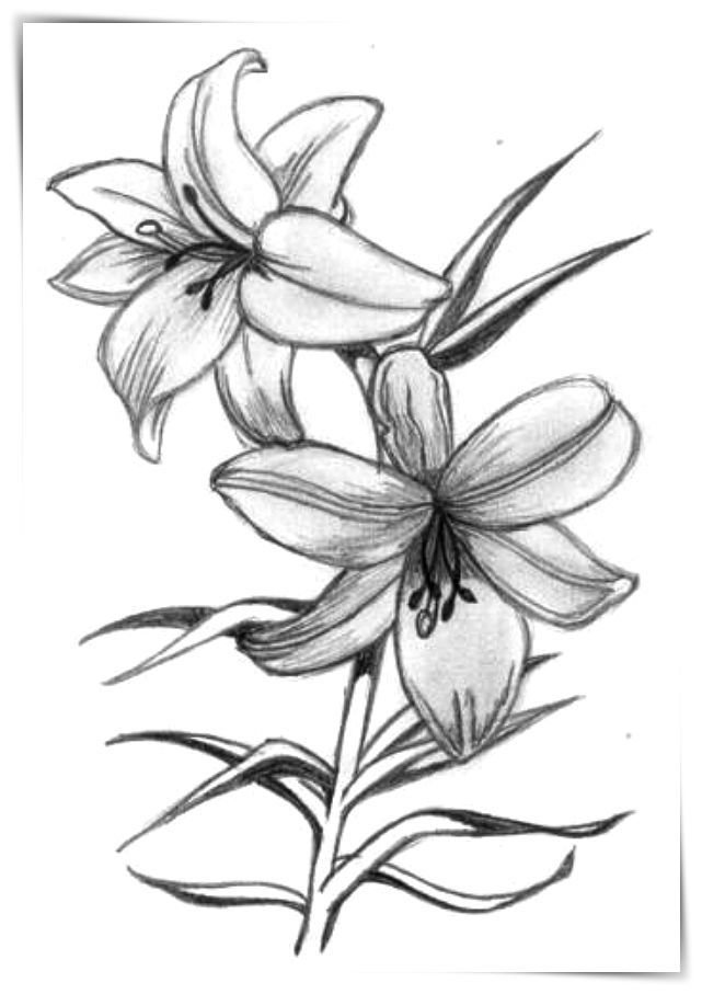 Цветы лилии карандашом