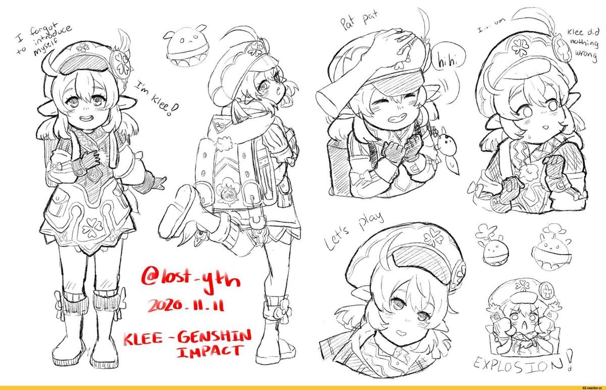 ![Кли карандашом Геншин Импакт]()