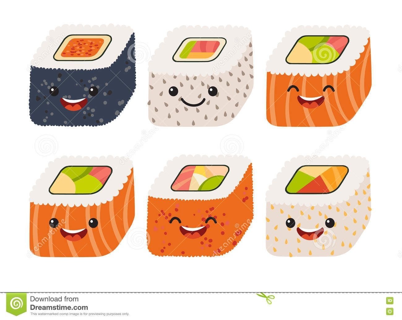 ![Стикеры мультяшные суши и роллы]()