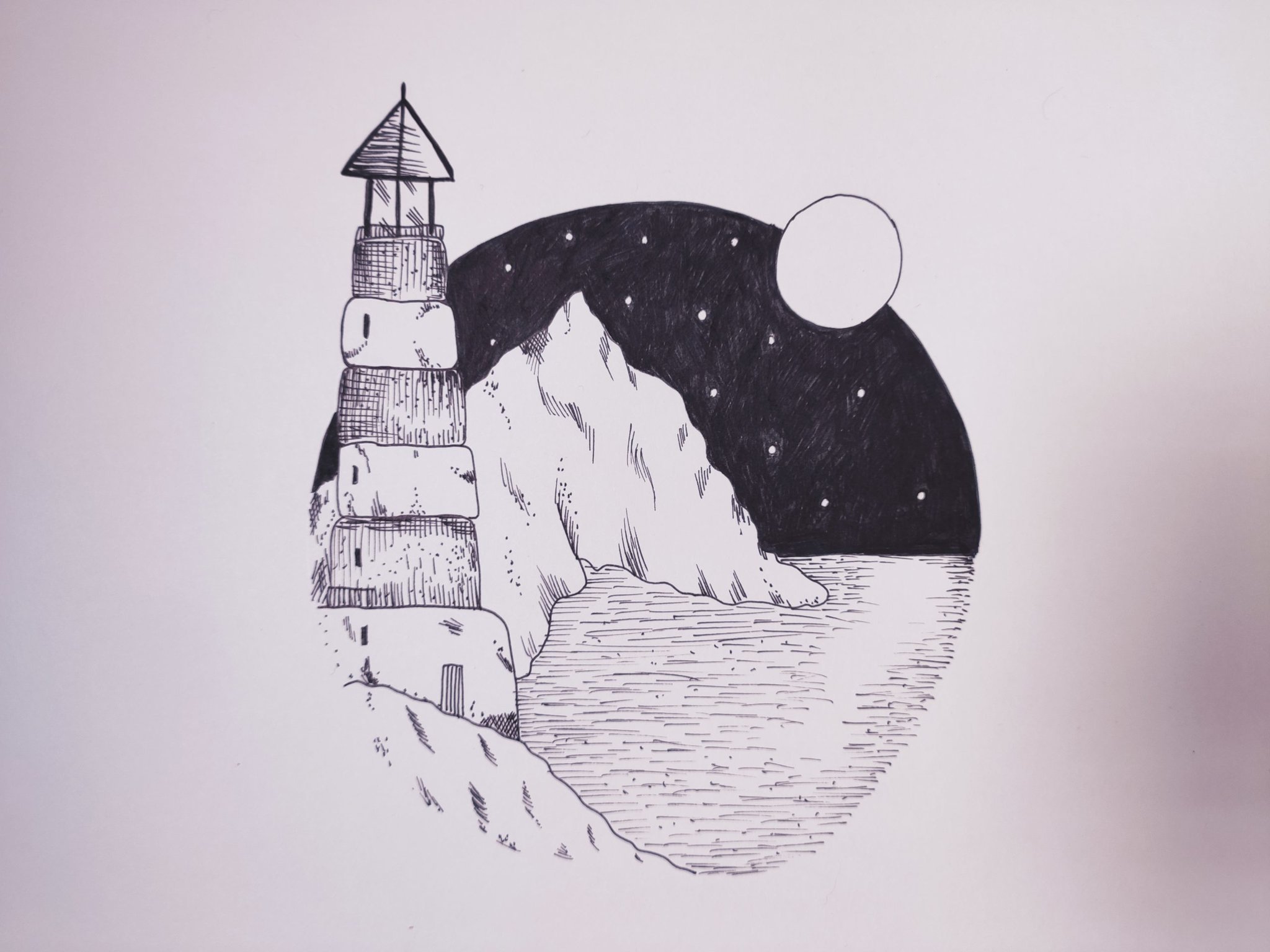 ![Ночной пейзаж простым карандашом]()