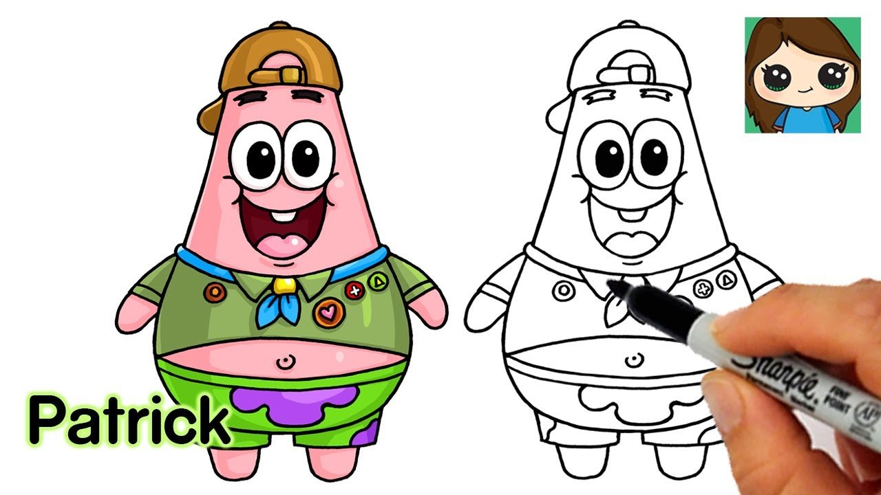 ![Как нарисовать Патрика из Спанч Боба карандашом]()