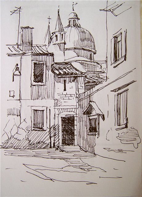 ![Архитектурный пейзаж карандашом]()