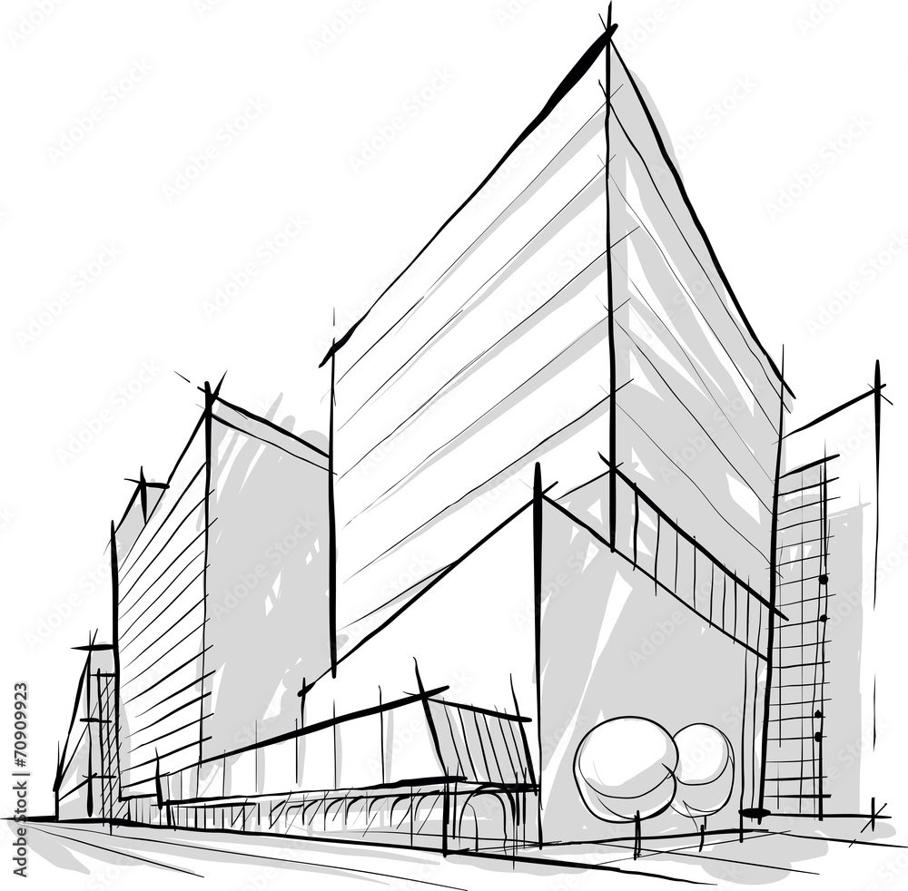 ![Современные здания карандашом]()