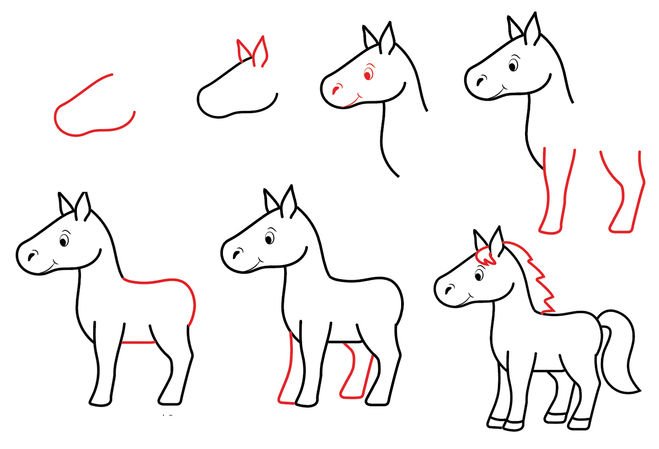 Поэтапное рисование лошадки для детей