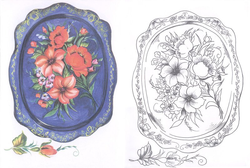 ![Жостовский поднос разукрашка]()