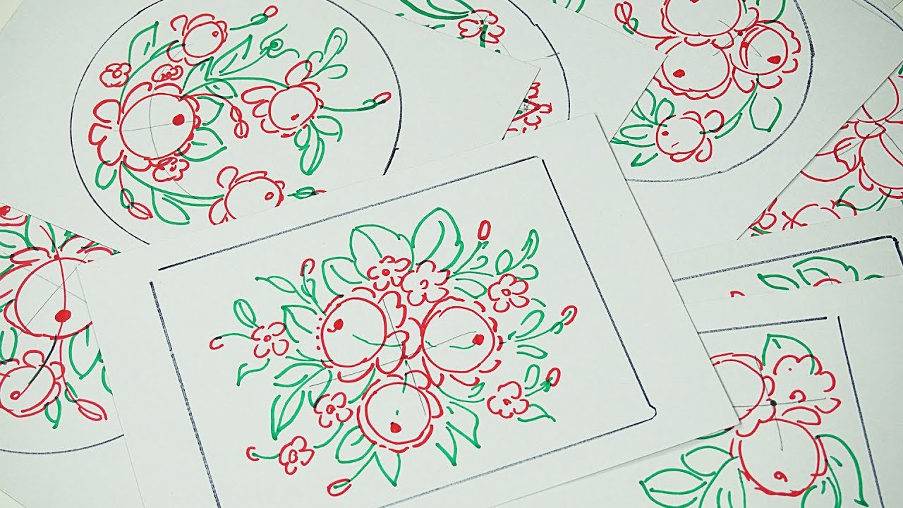 ![Эскиз росписи жостовского подноса]()