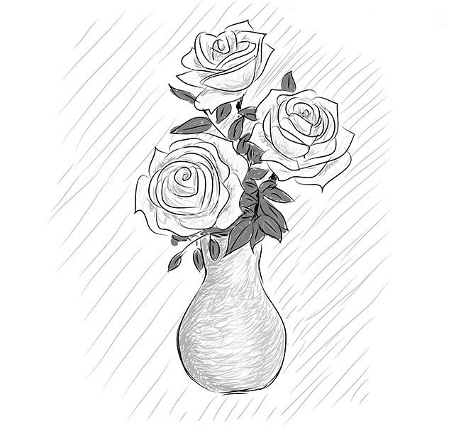 Ваза с цветами рисунок карандашом