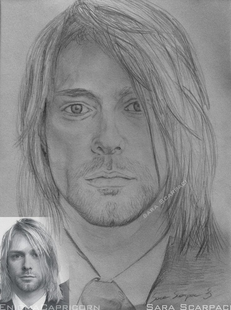 ![Курт Кобейн нарисовать карандашом]()