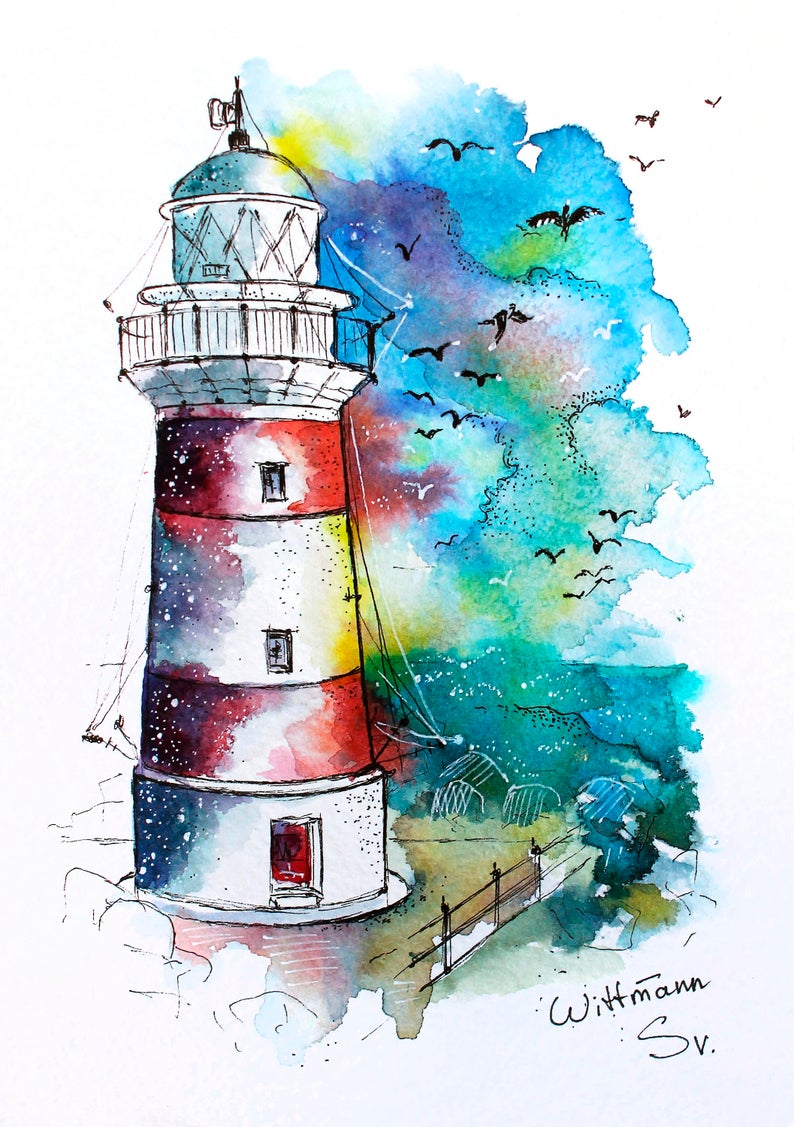 Скетчинг акварелью Маяк