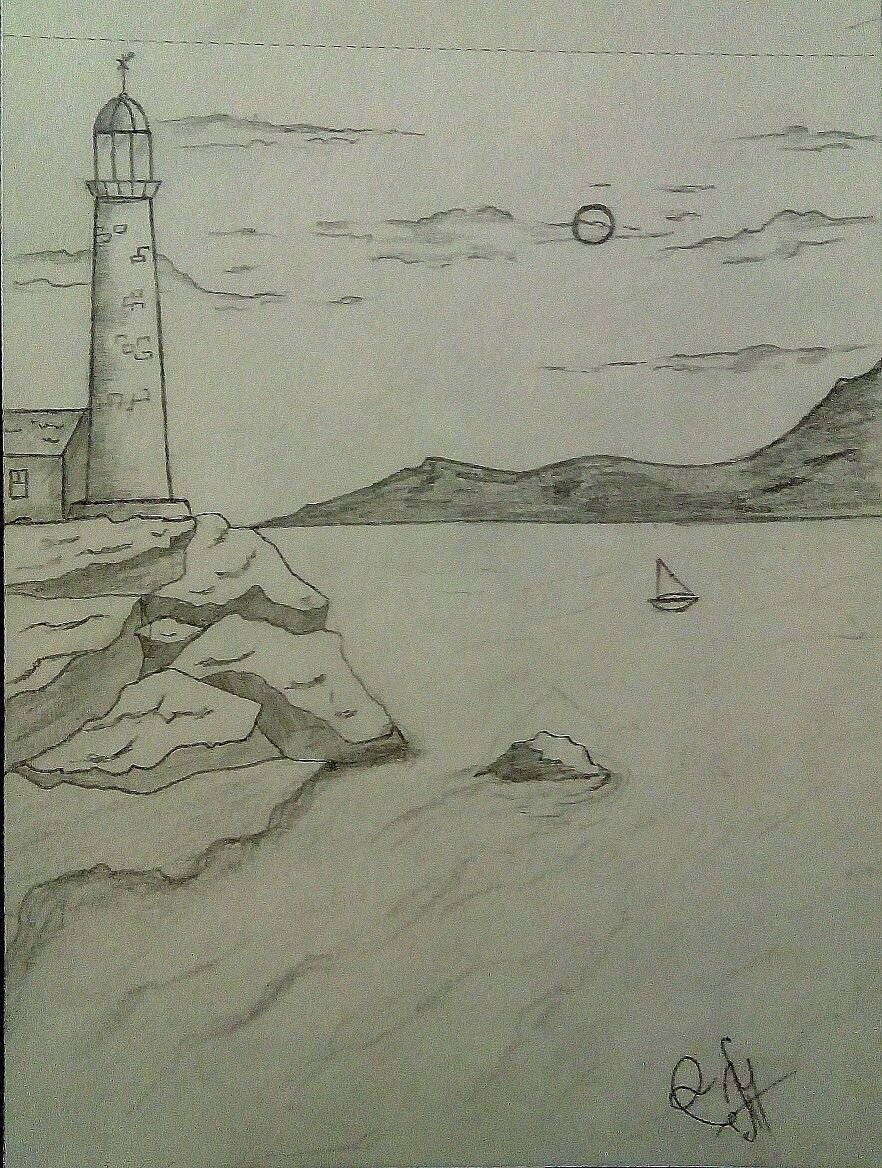 ![Маяк рисунок карандашом легкий]()