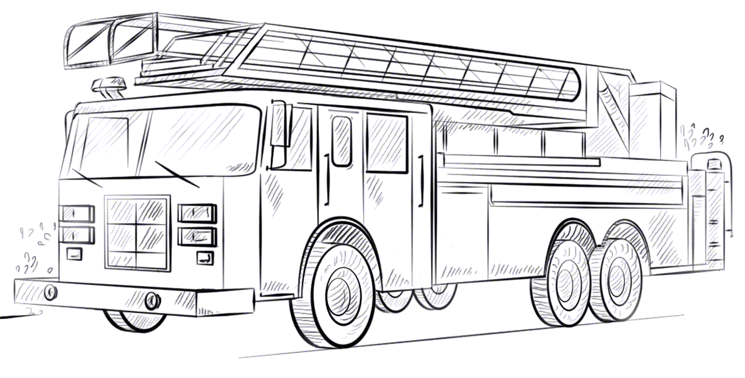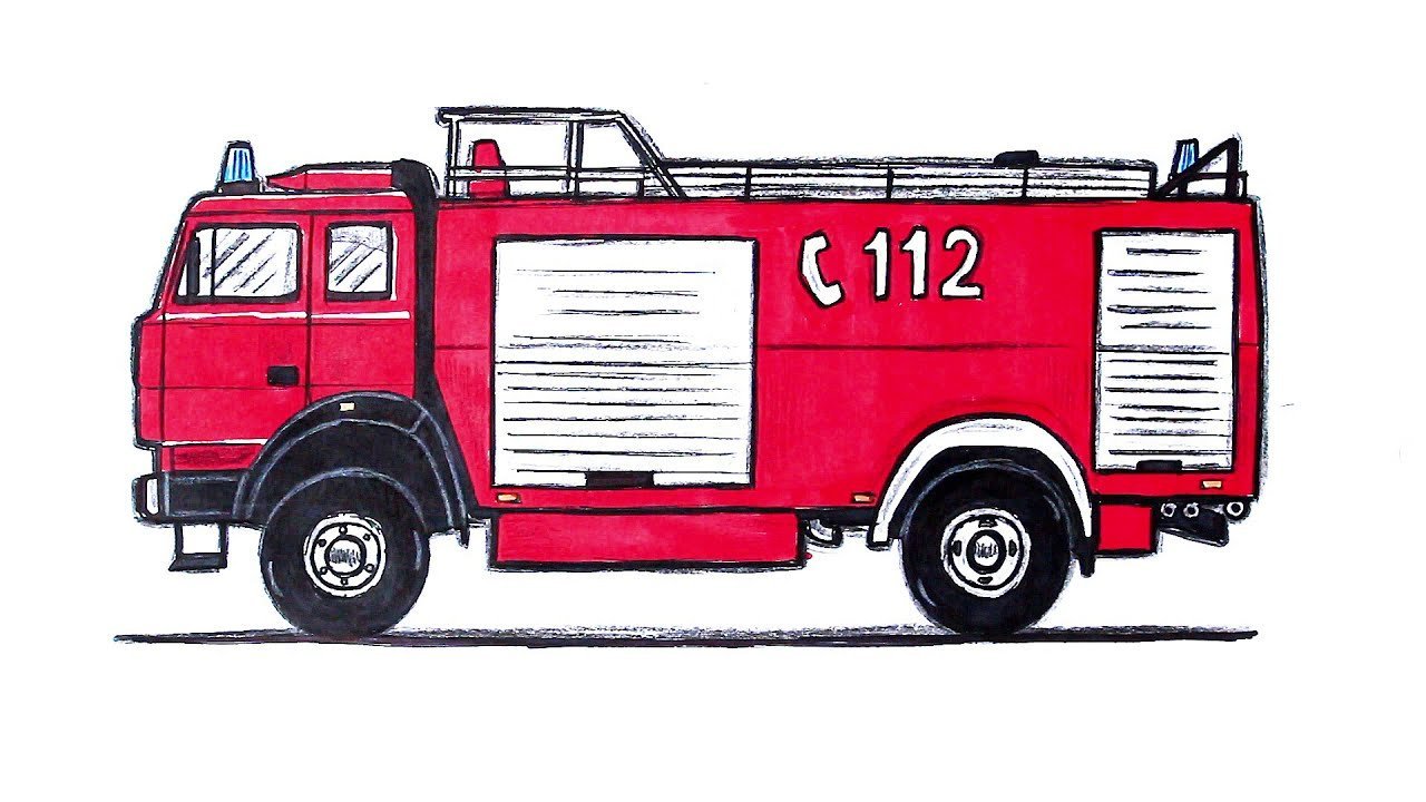 ![Как нарисовать пожарную машину карандашом для начинающих]()