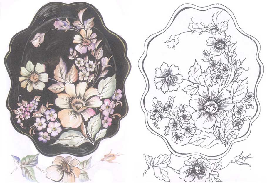 ![Жостовский поднос раскраска]()