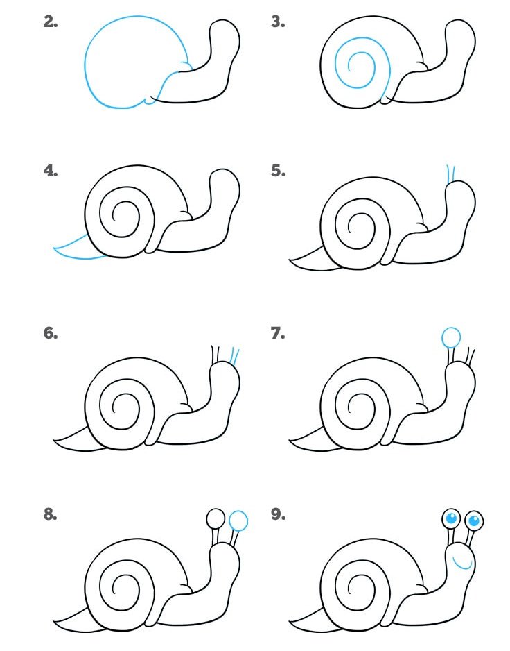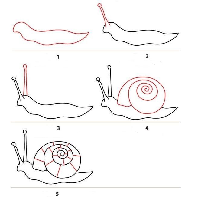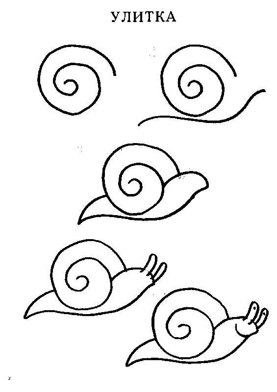 Поэтапное рисование улитки для детей