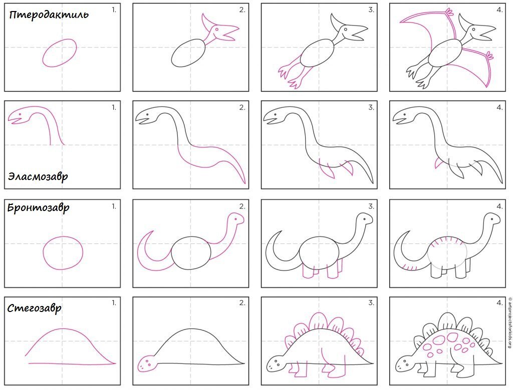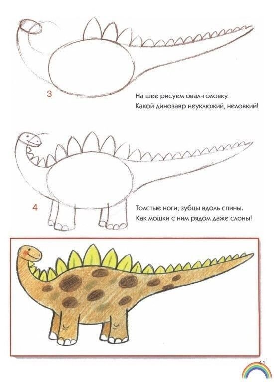 ![Нарисовать динозавра для детей поэтапно карандашом]()