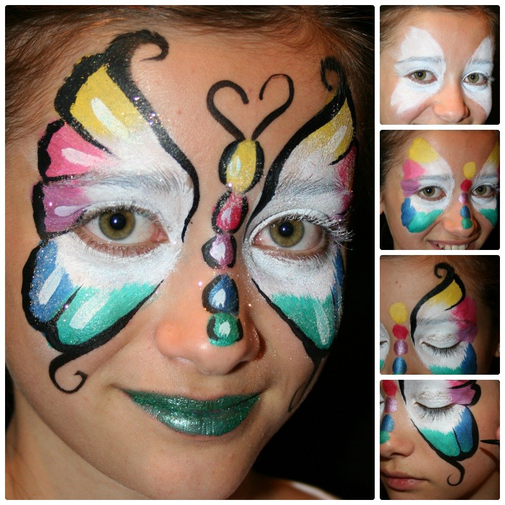 ![Аквагрим на лице пошагово]()