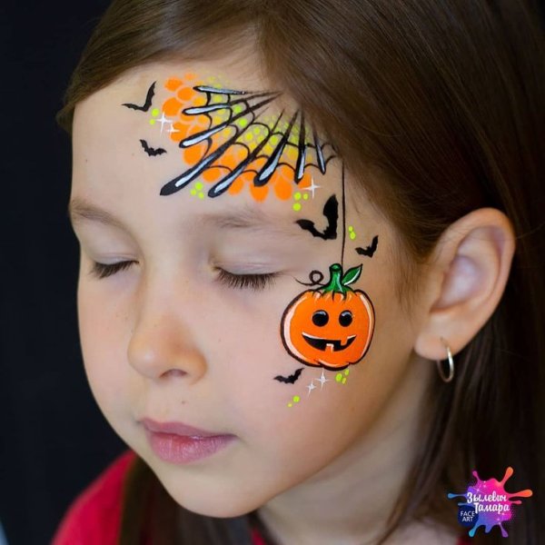 ![Аквагрим тыква на Хэллоуин для детей]()