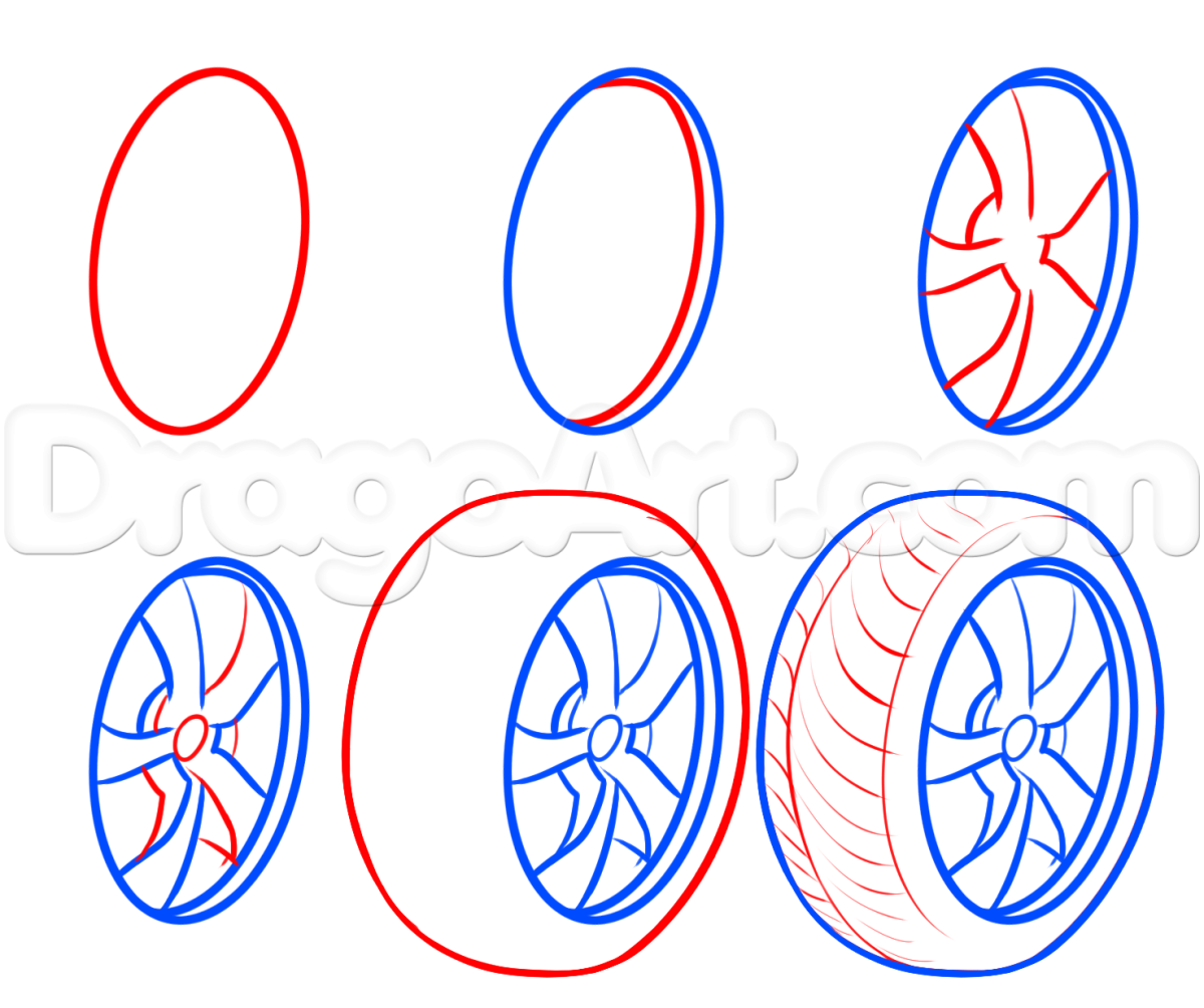 ![Рисование колеса для автомобиля]()