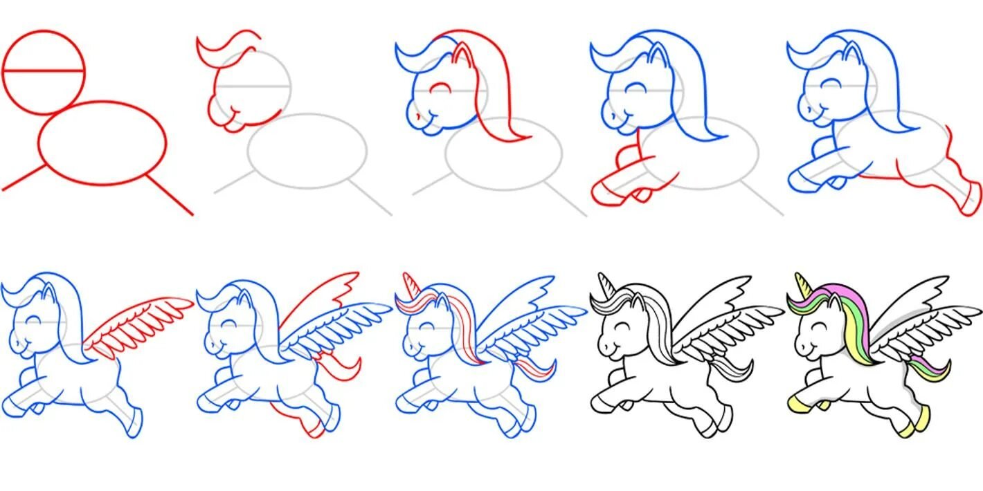 Поэтапное рисование единорога для детей