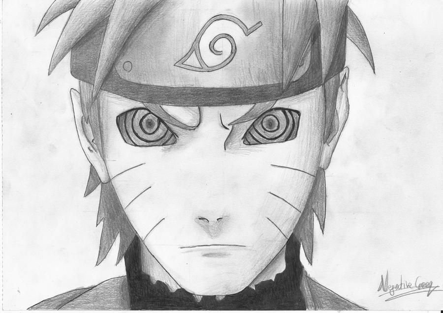 Наруто Узумаки лицо карандашом